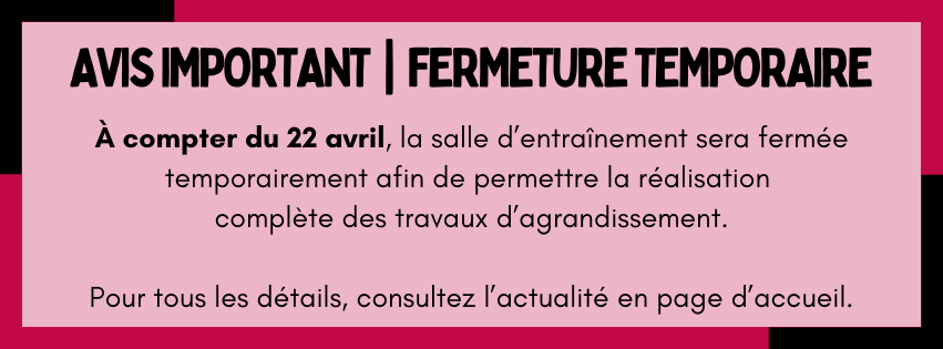 Horaire régulier – Salle d’entraînement