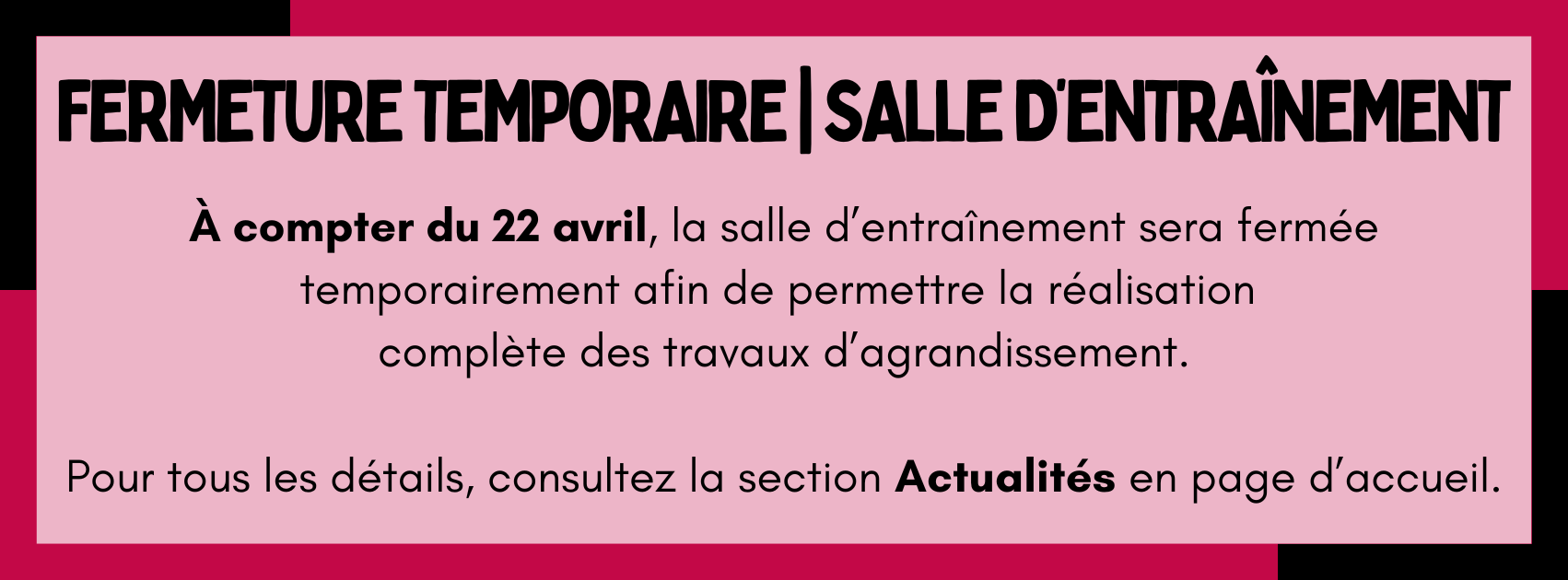 Horaire jours fériés – Salle d’entraînement